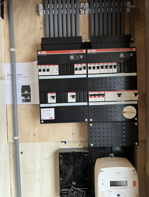Alle bedrading en apparatuur worden strak en professioneel afgewerkt.